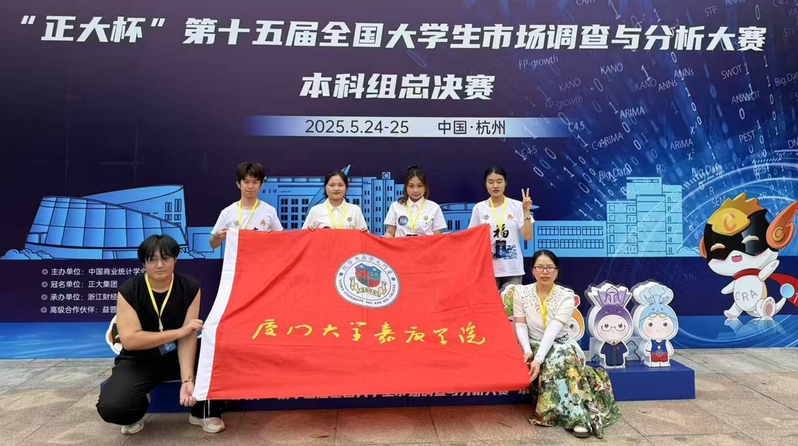 2025 年 5 月 26 日,第十五届 “正大杯” 全国大学生市场调查与分析大赛总决赛(本科生组)在浙江财经大学圆满落幕。厦门大学嘉庚学院学子组建的 “海丝遗珍探险团队” 表现卓越,以小组第一的优异成绩强势晋级全国公开赛,并最终摘得国家一等奖(全国第七)。这支队伍不仅是福建省今年唯一晋级公开赛的团队,更实现了我校在该项赛事中首次闯入全国公开赛的历史性突破(全国仅 15 支团队入围),书写了我校参赛史上的崭新篇章!四...