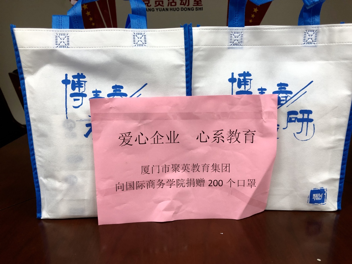 4月7日,国际商务学院2009届毕业生周夏,带领新加坡中源国际有限公司,向我院捐赠口罩1000个。截止目前,国际商务学院共接收到来自在2019级市场营销在校生杨德泉同学捐赠口罩1000个,厦门市聚英教育集团有限公司捐赠口罩200个,合计口罩2200个。每一位学子,每个合作企业,都在用自己的力量,关心关爱着国商院的师生。
