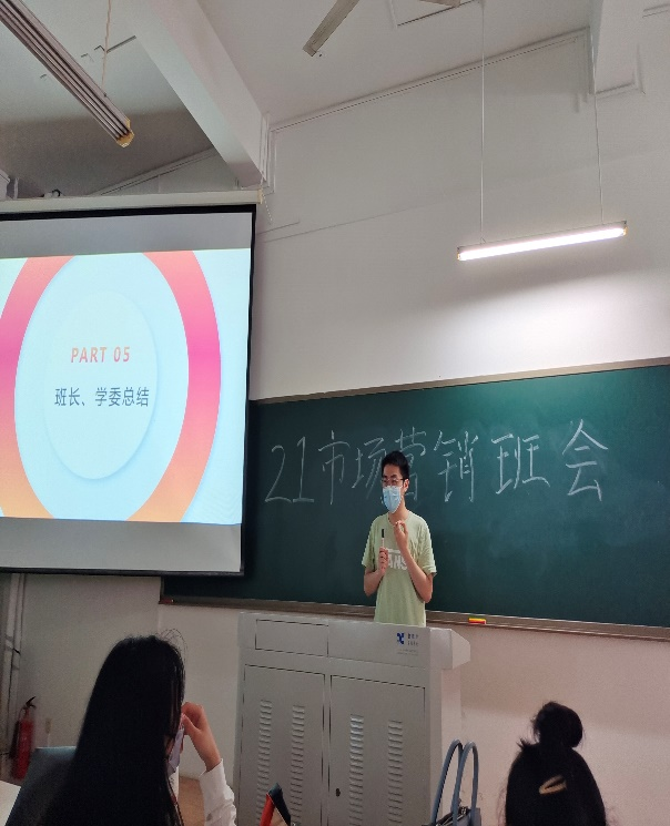 会议第三项内容,由班长林美超同学和学委郑鼎亮同学对本次会议以及上学期的表现进行总结进行,第一,,优等生人数较多,这是值得表扬的,但是挂科的人数依然存在,所以仍需努力。第二,体温打卡是每天的重中之重,一定要记住。