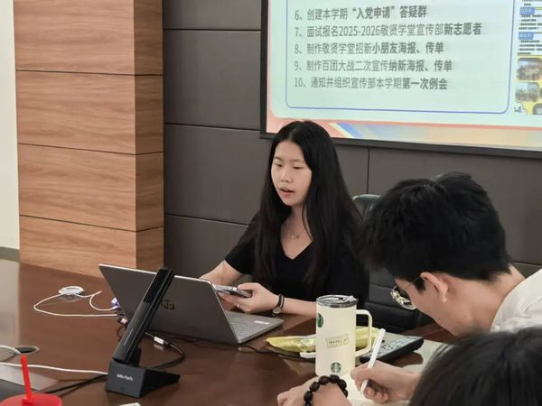 学生党员服务中心负责人张馨月聚焦发展党员全流程服务、整理会议记录、教育保障及材料审核工作,完成党校学员考试的组织工作,后续将推进预备党员相关工作。在敬贤学堂方面,四大部门协同进行:行政部负责建群与物资采购,宣传部负责宣传,助教部确定课堂主题,课题部筹备活动。
