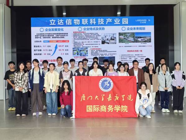 为深化产教融合,拓宽学生视野,2025年10月22日,厦门大学嘉庚学院国际商务学院国际经济教研室主任马爱丽与班级学业导师于颖教授带领2025级国际经济与贸易专业的学生们走进了立达信物联科技产业园,展开了一场富有深度的企业参访之旅,领略物联网领域的创新成果。