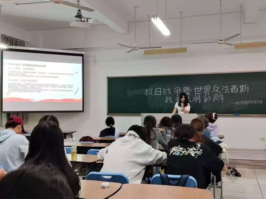 10月17日国贸24(2)班团支部参与纪念中国人民抗日战争暨世界反法西斯战争胜利80周年主题团日活动,团支书赖诗雨带领同学从金方昌烈士“严刑利诱奈我何”的铮铮誓言到无数英烈浴血疆场的壮举,回忆抗战时中华民族不畏强暴、百折不挠的精神。启示同学们,在实现民族复兴的道路上,必然会遇到各种艰难险阻,要继承先烈们的斗争精神,越是艰险越向前,把使命放在心上、把责任扛在肩上。在学习中勤奋钻研,在实践中锤炼本领,用青春和汗水传承抗战精神,以压倒一切困难的决心和勇气,为实现中华民族伟大复兴的中国梦贡献属于我们这一代人的力量。