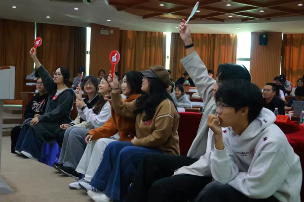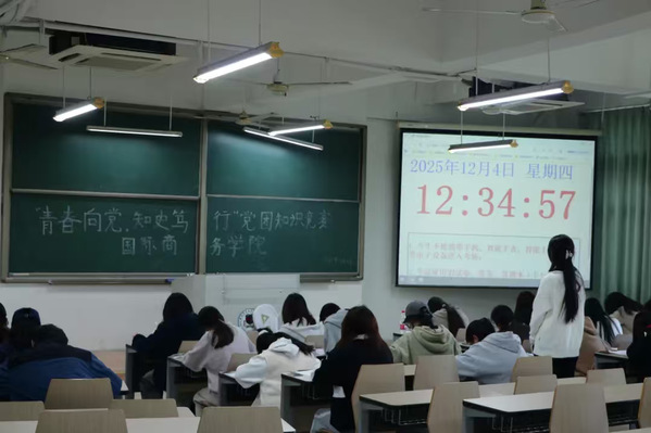 为推动党的二十届四中全会精神在青年群体中落地生根,引导广大学子将爱党爱国情怀转化为笃行实干的自觉行动,锤炼勇担使命的过硬本领,厦门大学嘉庚学院国际商务学院团委于12月10日12时30分,在经管A#301教室举办“青春向党,知史笃行”党团知识竞赛决赛。国际商务学院党总支书记刘莉、党总支副书记辛东亮,辅导员张钰淋、左伟唯、刘燕燕出席本次活动。