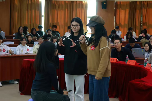 第三个环节“史人摹猜”要求各队选派3名代表协作答题,1人负责肢体表演、1人进行语言描述、1人猜答历史人物,答对1题得5分。答题过程中,各队代表默契配合、各展所长,以形象的肢体动作与精炼的语言描述传递关键信息,全力提升答题效率,趣味十足的互动表现引得在场观众会心欢笑。