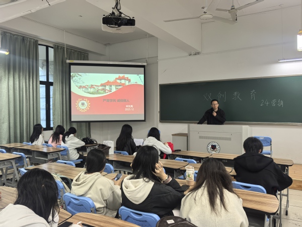 2025年12月29日星期一,厦门大学嘉庚学院国际商务学院24级营销团支部召开主题班会,在期末备考关键期强化诚信应考教育,并邀请学院双创中心主席方晓蕊学姐开展“以赛促学,以赛促长”双创经验分享,为同学们注入成长动力。