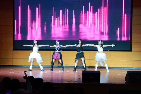 在满是青春的温柔与期许中,音乐成为了心意传递的风铃,化作情感的信使。由国际商务学院贰玖乐队带来的歌曲串烧《天天+最美丽的期待+我要你》,让现场观众仿佛坠入浪漫的梦境,捧着对未来的期许,感受青春的气息。