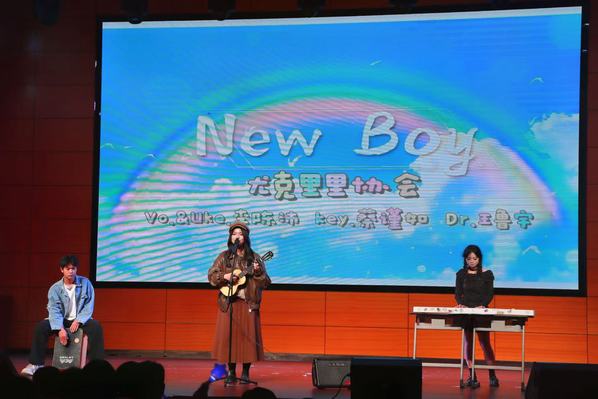 古韵余韵未散,青春的旋律已悄然响起。尤克里里社团带来的《New Boy》,用轻快的节奏、灵动的弹唱勾勒出青春的鲜活模样,简单的乐器弹出最纯粹的快乐,让现场氛围瞬间变得轻松活泼。