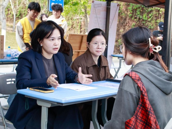 招聘会现场设立了“简历诊断”和”就业咨询”窗口,由四个主办学院中经验丰富的辅导员专窗坐镇,为学生提供实习与就业规划方面的专业指导和答疑服务。指导老师针对简历内容优化、格式规范、亮点提炼等关键问题耐心点拨,为同学们提供科学可行的修改建议,助力简历精准匹配岗位需求。