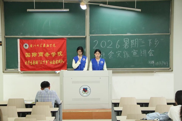 为引导国际商务学院学子在社会实践中锤炼品格、增长才干,增强社会责任感与时代使命感,学院团总支精心组织,分别在4月15日、4月22日分批次、分场地开展了2026年暑期“三下乡”社会实践专题宣讲会。4月15日,宣讲在主2#217、公一#104教室面向2024级全体同学进行;4月22日则在经管#219、公一#405、公一#411教室,为2025级市场营销、国际贸易、国际商务专业的同学开展专场宣讲,真正做到了宣讲精准覆盖。