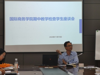 11月10日星期二,国际商务学院期中教学检查学生座谈会在经管A#415会议室如期举行。本次座谈会目的在于加强师生交流,听取学生意见以更好加强我院学风建设工作。出席本次会议的有国际商务学院院长苏锦俊、国际商务教研室主任刘莉、国际营销管理教研室主任连智华、国际投资与统计学教研室主任王生喜、国际经济教研室主任杨国梁、学院办公室秘书朱郑雯、教学秘书丁家媛、行政秘书兼辅导员辛东亮及部分学生代表。会议由辛东亮老师主持...